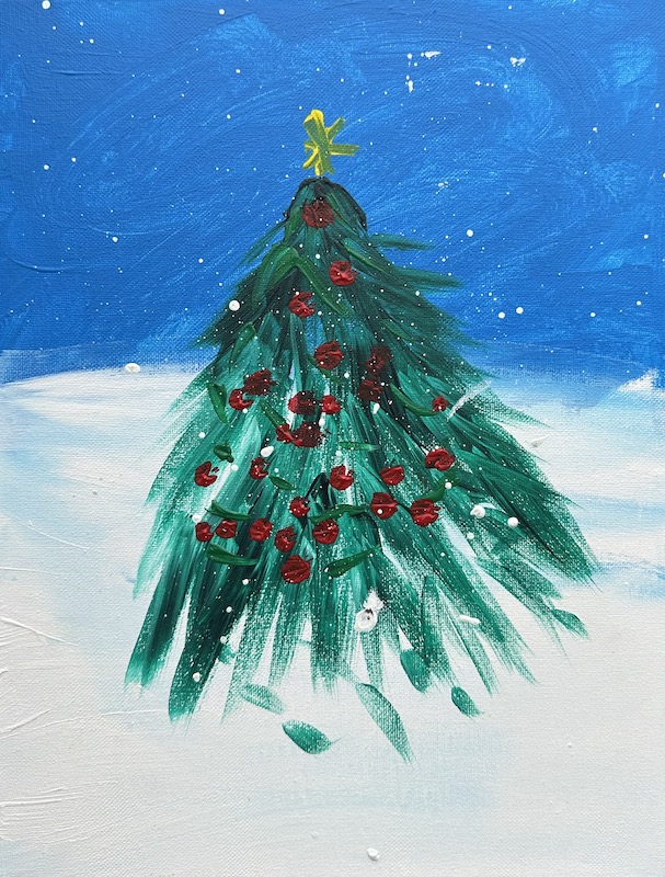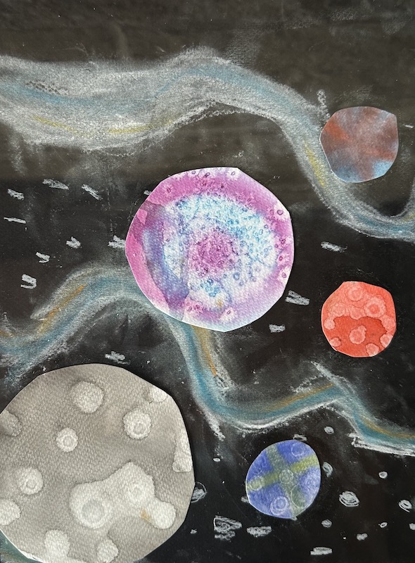 From left to right: Olivia Rekhman “Rainbow”, Kenleigh Thompson “Oh Christmas Tree”, Olivia Rekhman “Galaxy Stars”, Sophia Delgado “Rainbow Art”, Samuel Santos “Purple Ocean”