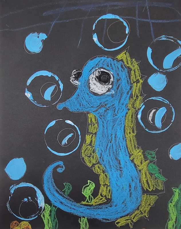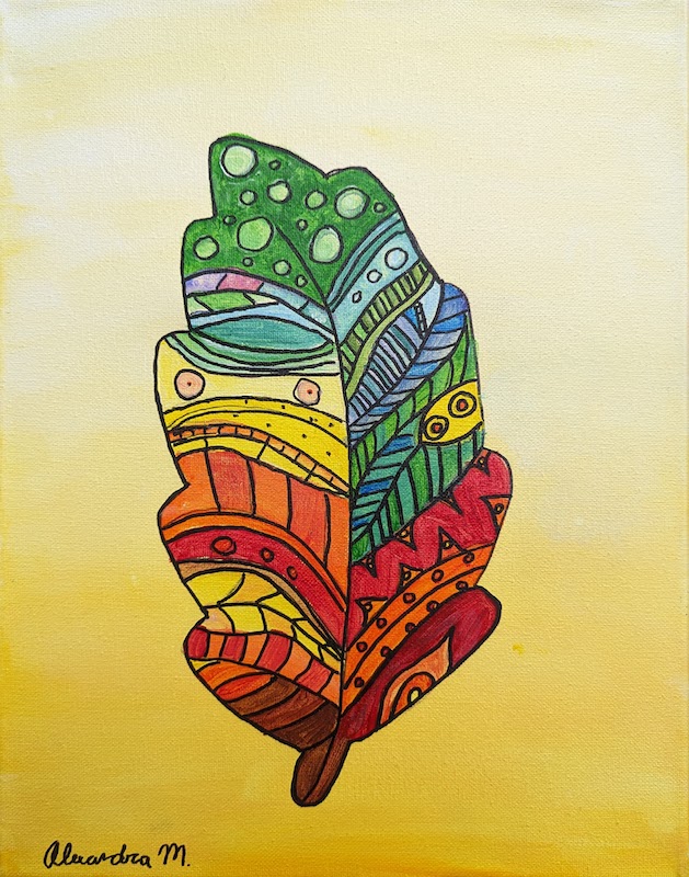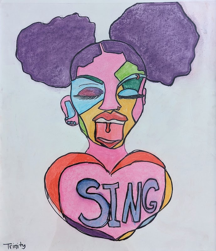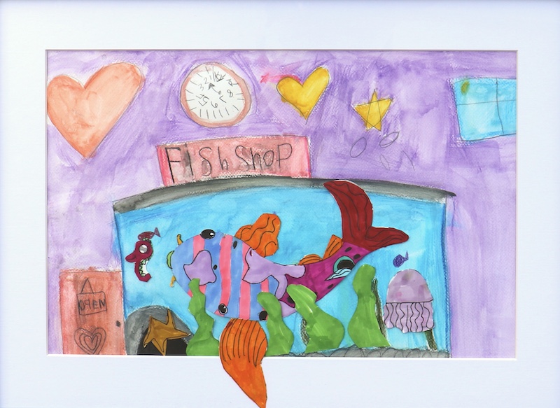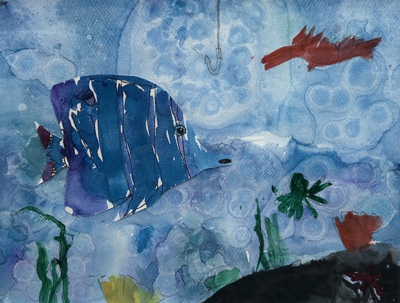 From left to right: Anika Titsworth “Mushrooms”, Aria “Isopod”, Audrey Gay “Birds of a Feather”, Bella Krieger “Overflow”, Bella Krieger “Jesus of Nazareth”, Isabella Rilloraza “Waiting”, Anika Titsworth “Lilac Sunset”, Justice Fettig “Elf with Pink Hair”, Yunxi He “Floating Head”, Loren Lawton “Australia”, Lily Higgins “Seahorse”, Gabriel Galletti “Connected” (and Achievement Award), Karma Dore “Untitled”, Katia Rios “Garfield”, Leila Rodriguez “Leila”