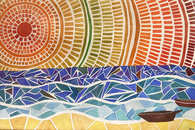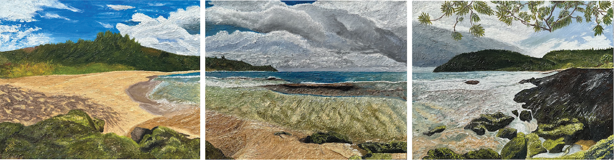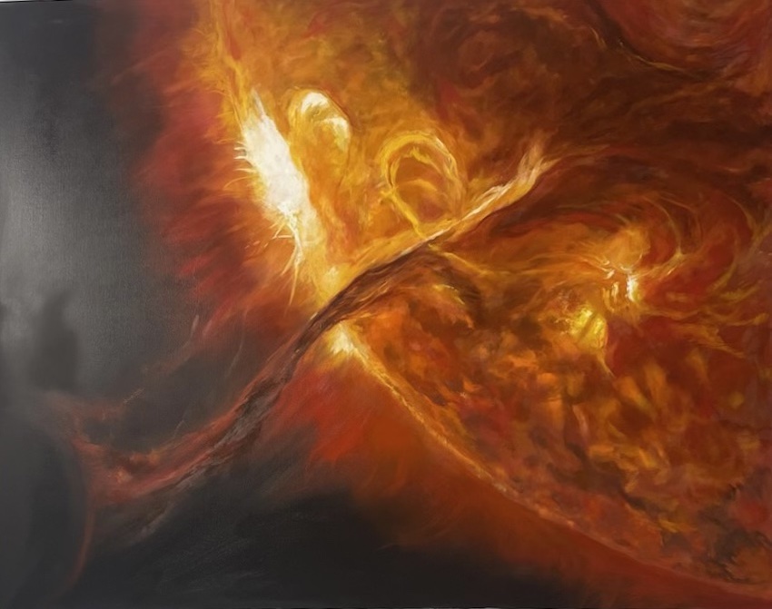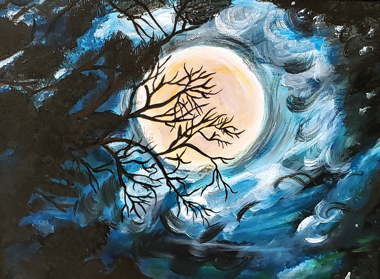 From left to right: Shirley Looney “Here Kitty Kitty”, Elian Sanchez “Maria”, Imre Szombathy “Sunburst”, Shirley Looney “Tranquility”, Imre Szombathy “Faith”, Farheen Nasir “Chaos in the Moonlight”