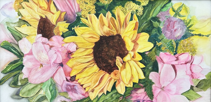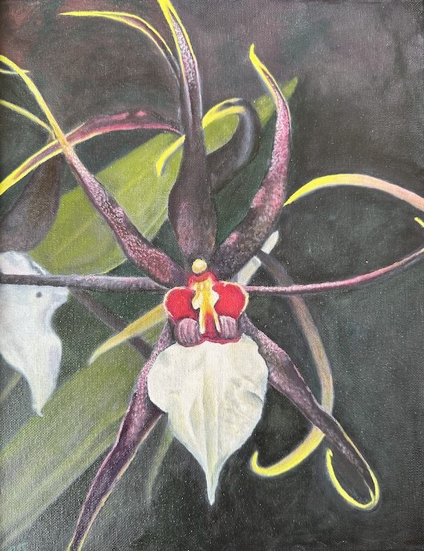 From left to right: Ardelle Fisher “Babydoll”, “Bittersweet”, Bob Harrell “Red Canna Lilly”, Elian Sanchez “Maria”, Geoff Minger “Sir Scooterman”, Imre Szombathy “Industry of Steel”, Jessica Ohrel ” Spider Orchid”, Geoff Minger “Red vs Blue”, Jim Elliott “God’s Backyard”, Jim Elliott “Penny for Your Thoughts”, Millie Holton “Peaceful Easy Feeling”, Sally Gonzalez “Sunflowers”, Mollie Holton “Some Beach Somewhere”, Shirley Looney “Here Kitty Kitty”, Monica Sinnott “Laundry Is Never Done”, Farheen Nasir “Fruits and Flowers”