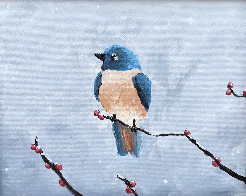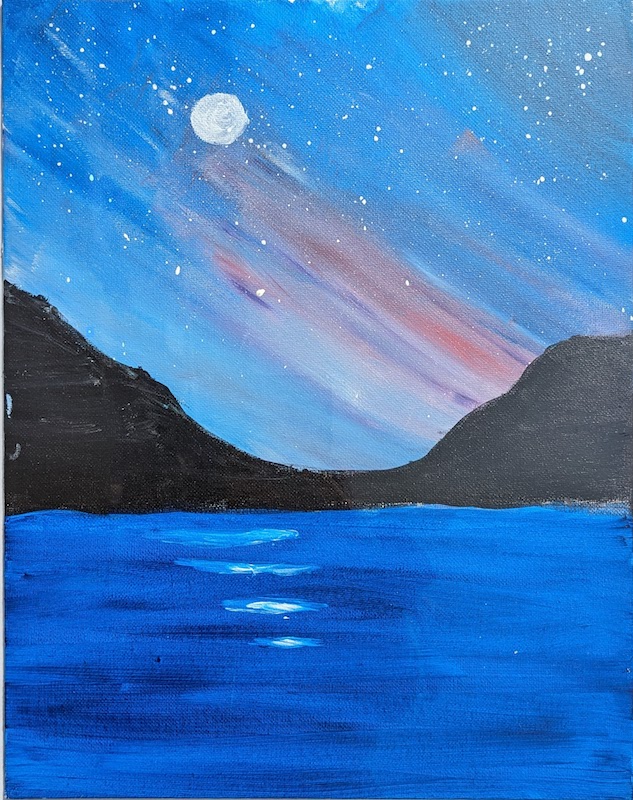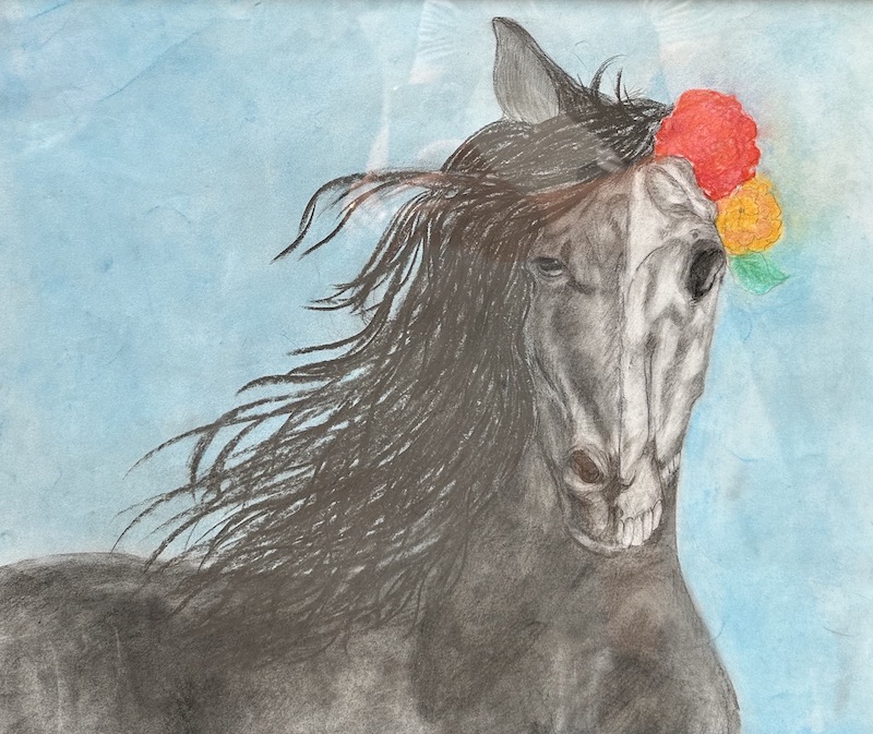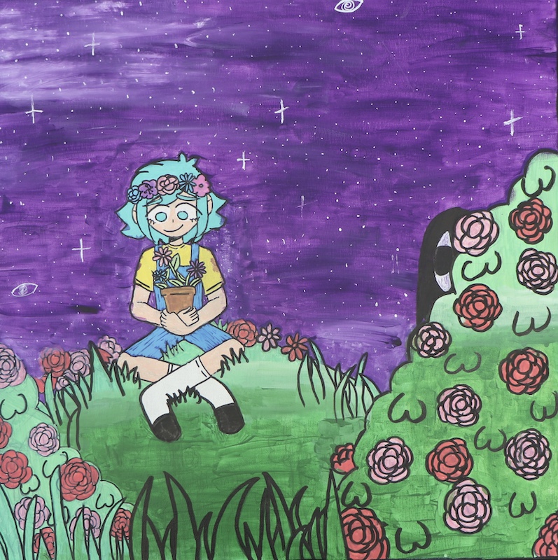From left to right: Arhaan Rai “Stallion”, Ella Sturman “Abstract Rooster”, Emmy Gregory “Dante”, Baine Stewart “Self Portrait”, Ella Sturman “Walk in the Woods”, Nidhi Pokhrel “Penny For Your Thoughts?”, Mackayla Stewart “Playdate”, Rebecca Blair “Winter Bird”, Sloan Bangerter “Self Portrait”, Sophia Olivares “Dia de los Muertos Beauty”, Sophia Olivares “Portrait of Van Gogh”, Ella Shekari “Red Onion”, Emma Shekari “Shrek”, Rory Villines “Puss in Boot”, Katie Abercrombie “Koi Boi”, Aathmika Karthick-Subhashini “Sunset Mountains”, Areen Hassouna “The Night Sky”, Olivia Marisol Forgenie “The Flow of Nature”, Jenna Hughley “What’s Up, Ladybug?”