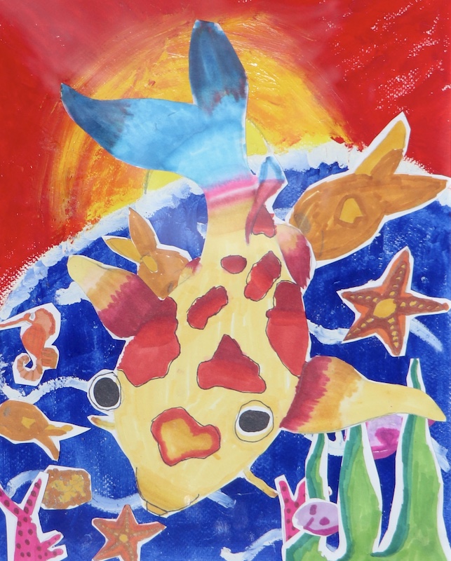 From left to right: Charlie Basalay “Ara the Turtle”, Aria DeDear “Fish Under the Sea”, Amanda Marti “The Energetic Sloth”, Caroline Gerace “Self Portrait”, Charlotte Chism “Pineapple Meets a Strawberry”, Emmett Michel “The Dog of the Night”, Pablo Delgado “Four Best Friends”, Sarah Torrescano “Love Tiger”, Chris Lin “A Glowing Mushroom”, Gemma Thompson “Gemma”, IsaÃas Gamez “Flor Azul”