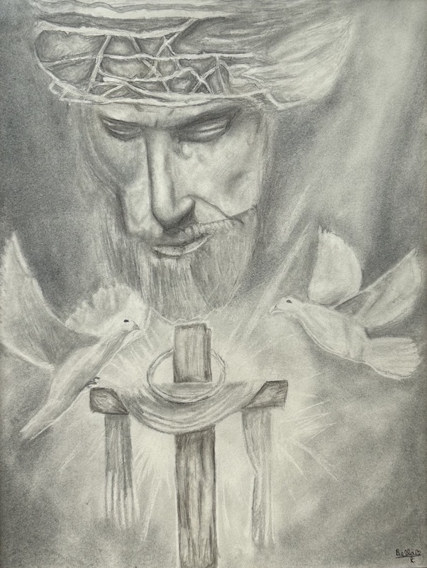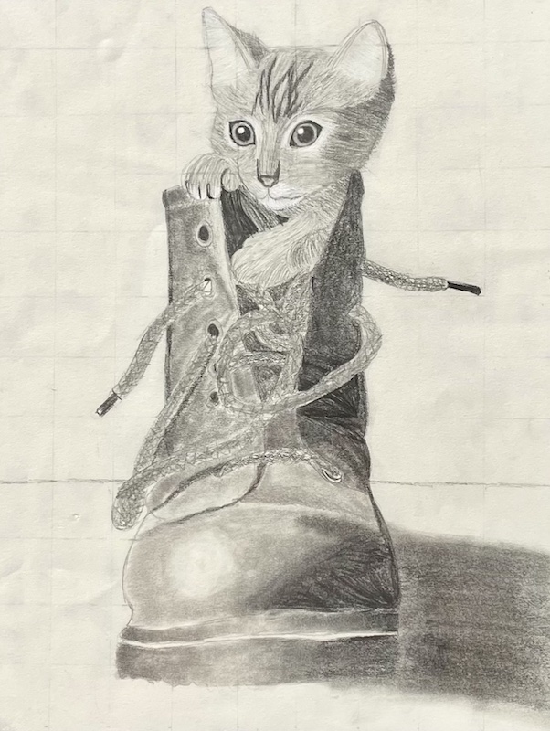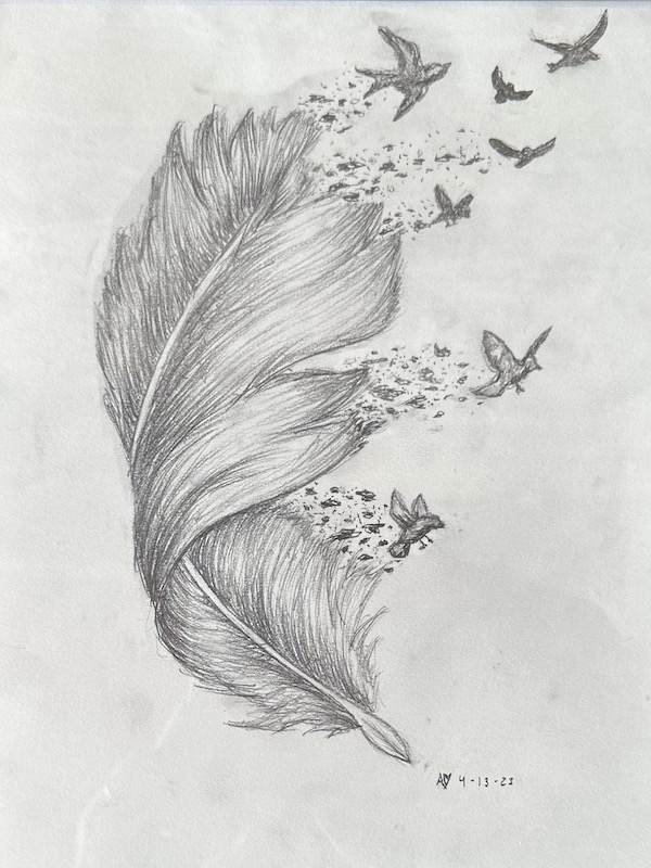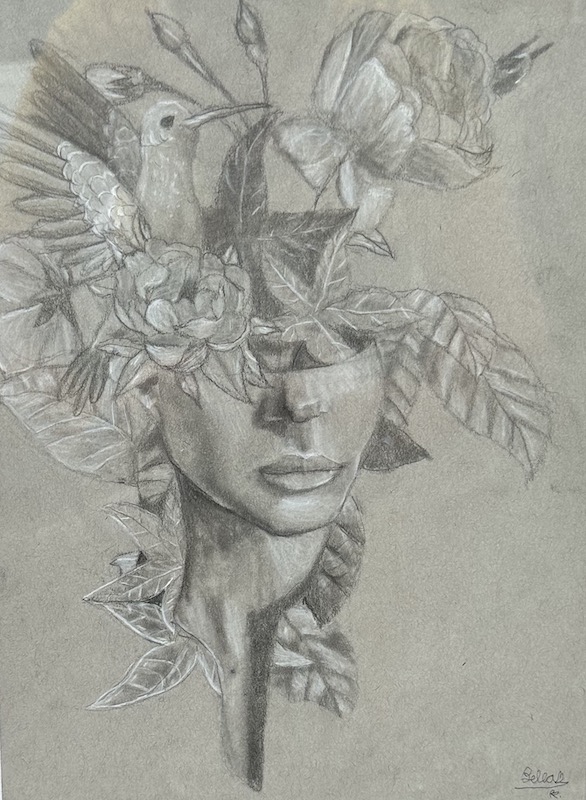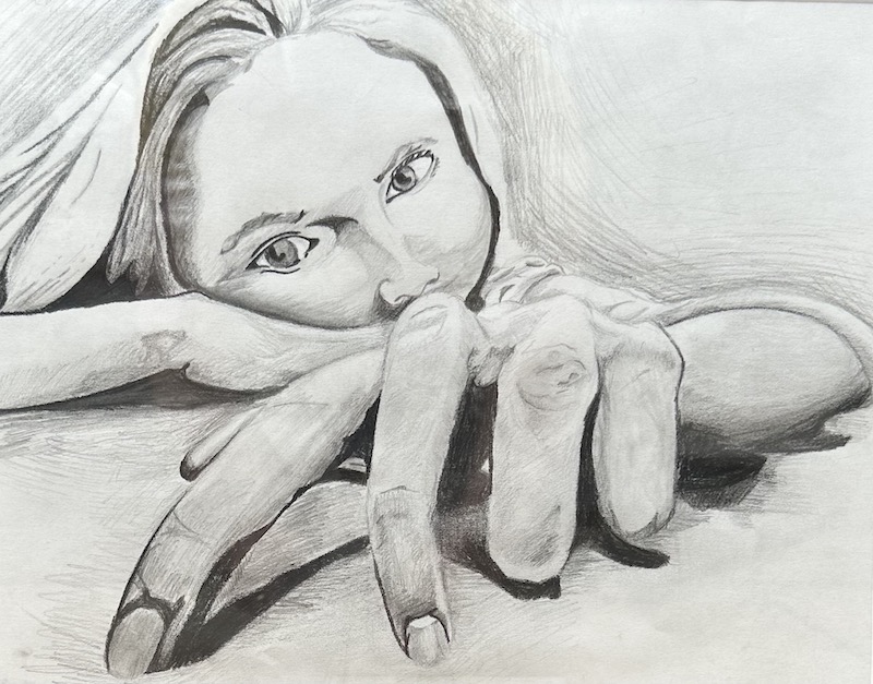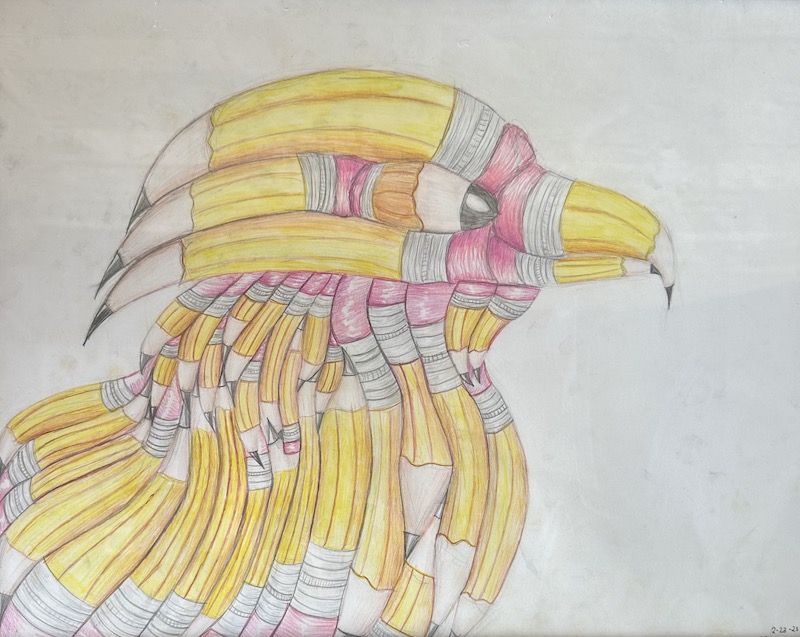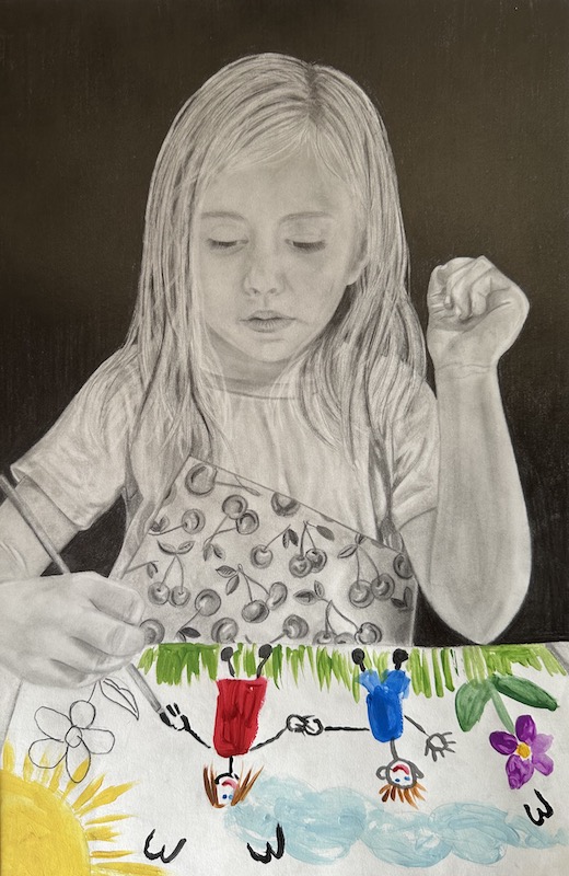 From left to right: Ava Price “Girl as Flower”, Audrey Gay “Pencil Hawk”, Alexis Travis “Summer Stare”, Abhijay Prasad “New York Skyline”, Abbie Singleton “Cassowary”, Akshaya Dandamudi “Rhythm”, Lauren Falzone “Disconnected”, Lila Ortiz “Frozen Longing”, Mackayla Stewart “Head in the Clouds”, Savannah Brewer “What’s This”, Lauryn Falzone “The Creation of Adam” (Artwork not shown), Abhijay Prasad “Beauty of Beast” (Artwork not shown), Nikolas Cam “The Sensational Lnhx”, De’Mari Tyler “Hope Legacies”, Samira S. Rodarte “Basil in a Flower Field”, Nicholas Shields “From Afar”, Josiah Laughner “The Caring German Sheperd”