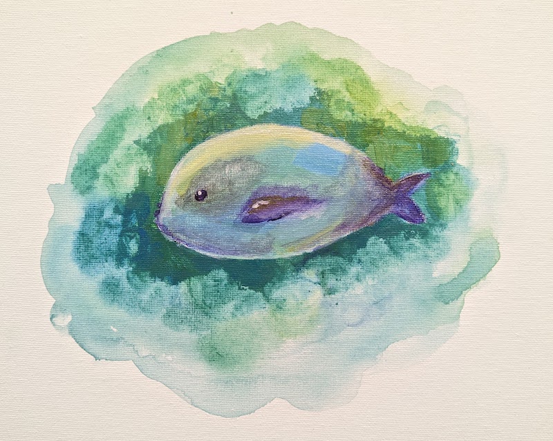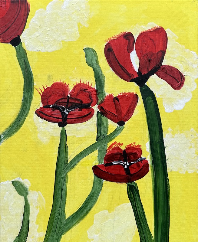From left to right: Ashley Castillo “Passenger”, Loren Lawton “Australia”, Anika Titsworth “Mushrooms”, Lotta Quisbrock “Childhood Dreams”, Anika Titsworth “Lilac Sunset”, Lotta Quisbrock “Hidden Pressure of Society”, Katia Rios “Garfield”, Lily Higgins “Seahorse”, Katie McCroskey “Cherries”, De’Mari Tyler “His Name is Jesus”, Angelina Riser “Tearful”, Ayana Johnson “Portrait of Man”