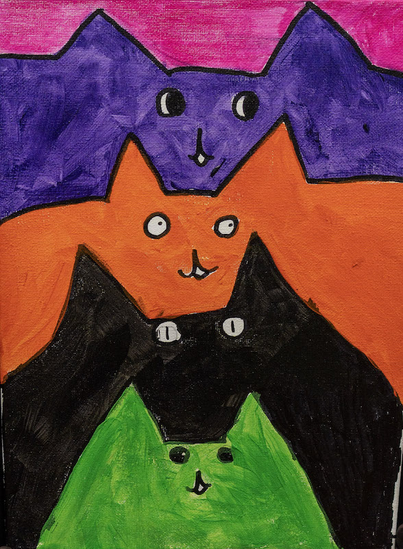 From left to right: Reece Thompson, “Flame”, Everly Ulmer “Spring Tree”, Lucas Rexing “The Rainbow Tree”, Dax Rexing “Spectrum”, Rivers McMaster “Zora”, Allie Murphy “Fluffers”, Alexa Faust “Girafo”, Edith McMaster “Ice Cream”, Arbelle Barak “Baby Dragon”, Stella Warjas “Orange”, Finn Butler ” Valentines”, Quinn Parsons “Winter Tree”, Kai Sherry “Monster”, Svitlana Poputnikova “Castle”, Hayes Jones “Snowy”, Kate Golomidiva “Mushroom Picnic”, Felicia Hernandez “Thing”