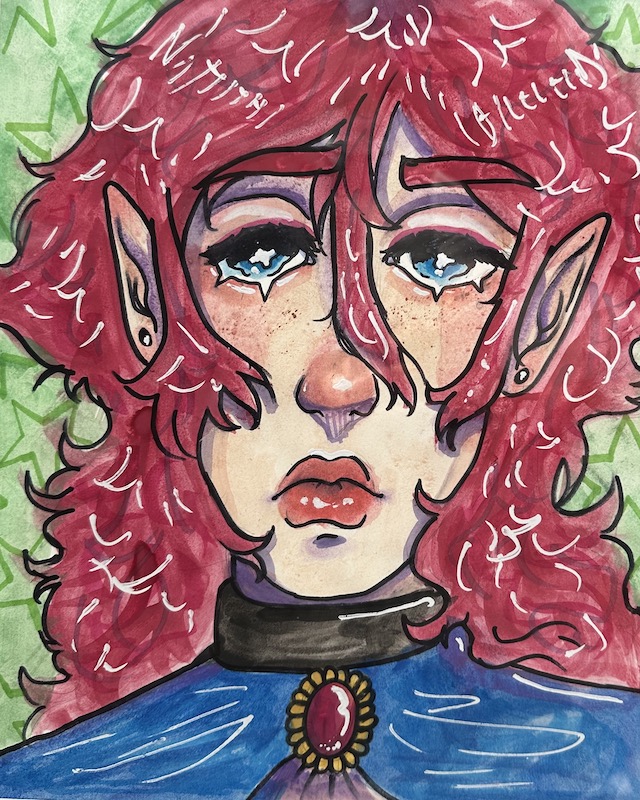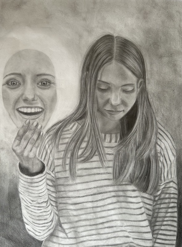 Cade Coney “Southern Star”, Savannah Brewer “The Bliss of Blort!”, Kingston Cantillano “Strange Portal”, Justice Fettig “Stargirl”, Hope Stevens “Mene”, Sophia Robidahrt “Photo Perfect”, Sophia Fahs “Irdescence”, Katherin Zuniga “Watds in the Cracks”, Aubrey Atkinson “Western Fate”, Martin Antov “Tomorrow is Here”, Caleb Cassis “Black Light Octopus”, Wolfie Hartzog “Shoto Todoroki from My Hero Academia”, Brynn Roberts “Little Paper Boats”, Kate Jarmon “Anime Friends”, Mackayla Stewart “Sunflower”, Cade Casas “Cobwebs”, Madison (MADS) Sutter “A Portraits Reflection”, Madison (MADS) Sutter “Serenity”, Madison (MADS) Sutter “Halo”, Savannah Oliver “Powerful Woman”, Nikita Agnihotri “Mahiro”, Kaurli Walker “Eons”, Kaurli Walker “Crezz Face”, Kaurli Walker “Axel”, Hadley Nattress “Blossom”, Katia Rios “Hyun-Sou”, Nicholas Shields “Watching Television I”, Titus Laughner “Angel”, Sean Browne “The Dark Knight”, Ayana Johnson “Portrait of a Man II”, Ethne Laughner “Green Dragon” (Achievement Award)
