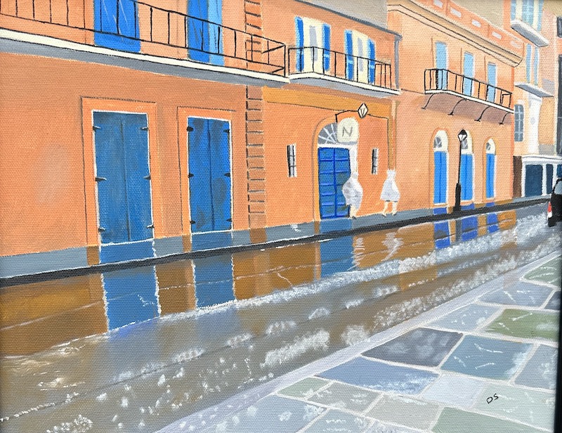 From left to right: Chloe Jackson “Coyote”, Ardelle Fisher “Young Beauty”, Janim Vander Berg “Neon Dream”, Shirley Looney “Two Enchanted Trees”, Dwight Schaeper “Rainy New Orleans”, Janim Vander Berg “The Gift”, Mindy Henson “Desert Blues”, Frank Ellis “Frank’s Lamb”, Rumbo Zheng “NF-Nate”, Sally Gonzalez “Dried Roses”
