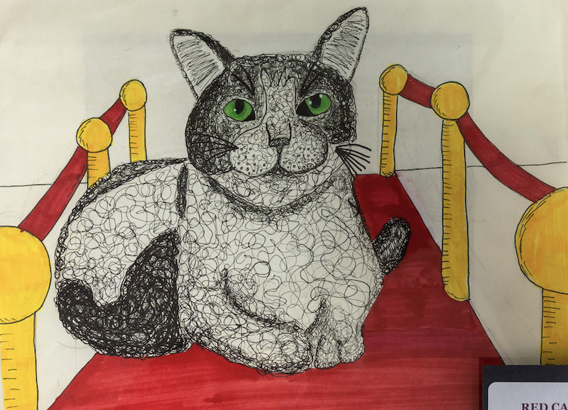 From left to right: Abby Ashford “Coraline Jones”, Audrey Ivy “Still Life in Color”, Avek Dongol “The Avacado”, Avek Dongol “Prismaleo”, Desiree Gavarrete “Poppy Field”, Avek Dongol “The Turtle”, Emmy Gregory “Red Carpet Cat”, Zoe Eden “The Cow”, Maeve Cunningham “Sunset Sloth”, Stella Granger “Thermal Pug”, Brianna Kalis “Droplets”, Tiago Anaya “Bananas”, Jadyn Semien “Moo Moo”, Abby Horton “The Rainbow Ostrich”, Knoxx Pickett “Zombie Smoke Guy”, Kotone (Dolphin) Hasegawa “Girl with Pink Hair”, Nandini Mukherjee “Vase Flowers”