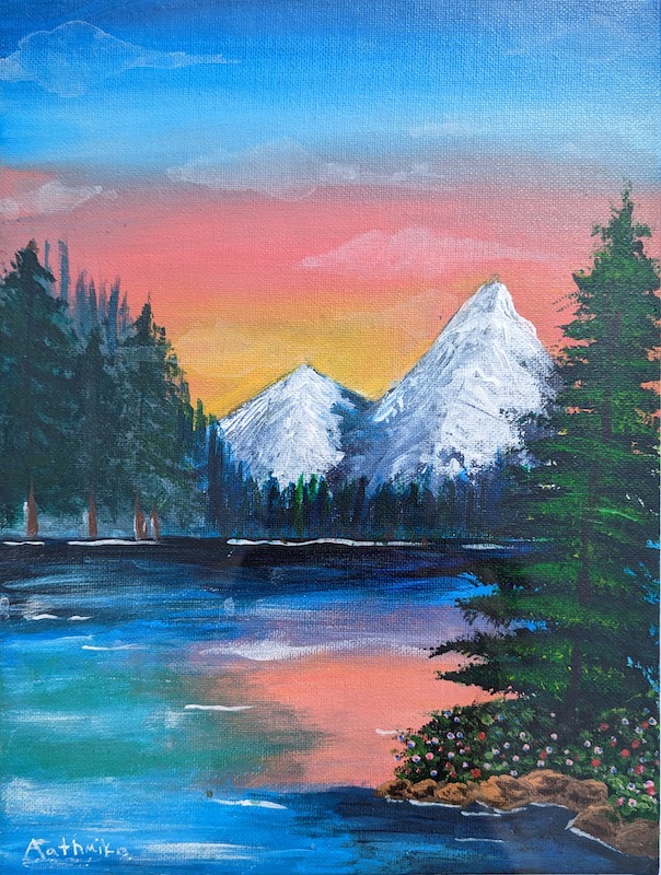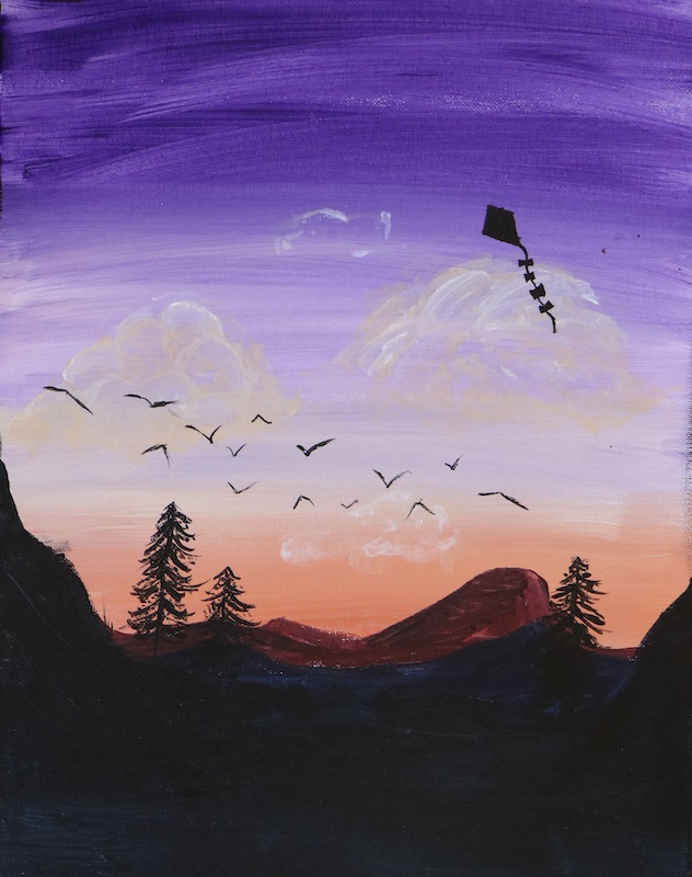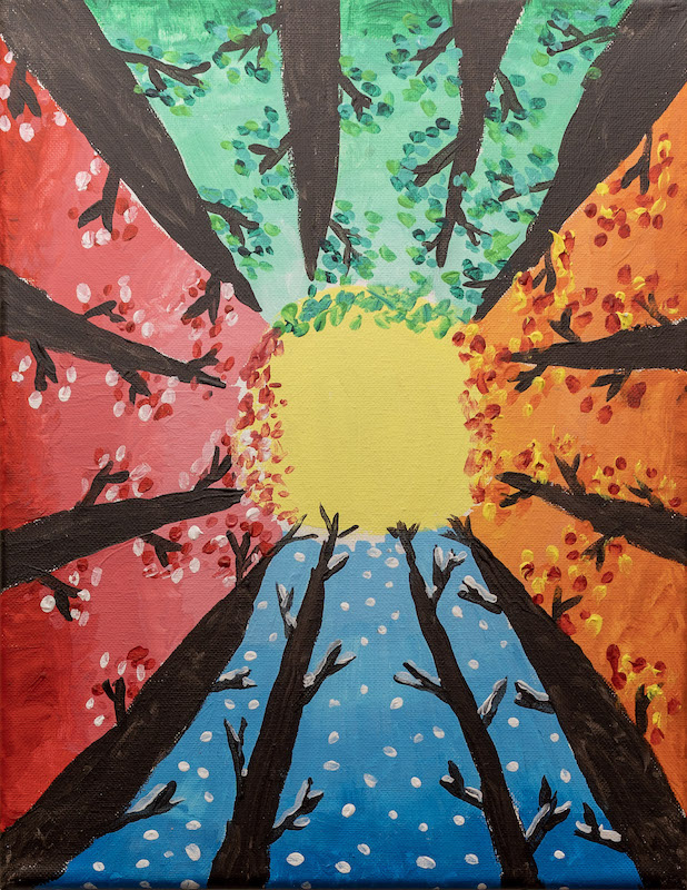 From left to right: Arhaan Rai “Stallion”, Avek Dongol “Prismaleo”, Sophia Olivares “Dia de los Muertos Beauty”, Charlotte Ting “Mother Nature’s Mistake”, James Blanchard “Trees in All Seasons”, Arhaan Rai “Texas Beauty”, Rory Villines “Puss in Boot”, Emma Shekari “A Colorful Cupcake”, Olivia Wegner “Fly a Kite”, Jazelle Jones “Izumi”, Olivia Wegner “Sunrise Lighthouse”, Aathmika Karthick-Subhashini “Sunset Mountains”